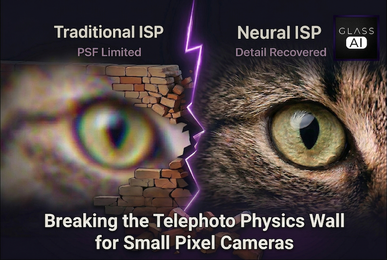 The small-pixel era isn’t just a challenge — it’s an opportunity. The conventional wisdom that shrinking pixels inevitably degrades image quality assumes a conventional ISP pipeline. With a Neural ISP operating end-to-end from RAW to RGB, smaller pixels provide denser spatial sampling that the network can exploit to achieve higher resolving power, even as the optics become progressively more imperfect.